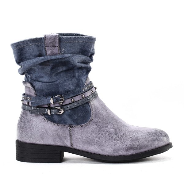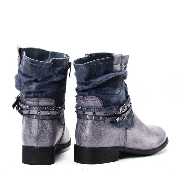 Granatowe botki z paskami - Obuwie