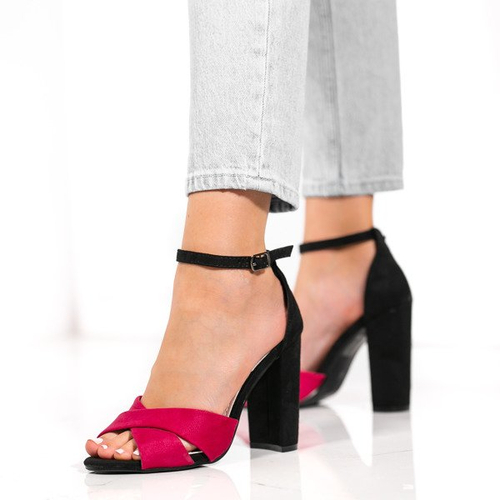 • Sandały na wysokim słupku wykonane z ekologicznego zamszu. Buty w kolorze czarnym z fuksjowym paseczkiem. Miękka wkładka ze skóry ekologicznej. Model zapinany na sprzączkę. Stanowią idealne połączenie do eleganckich stylizacji!