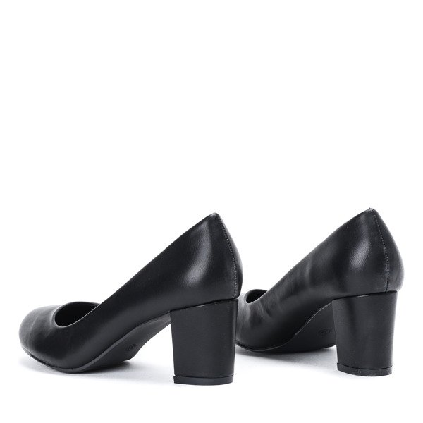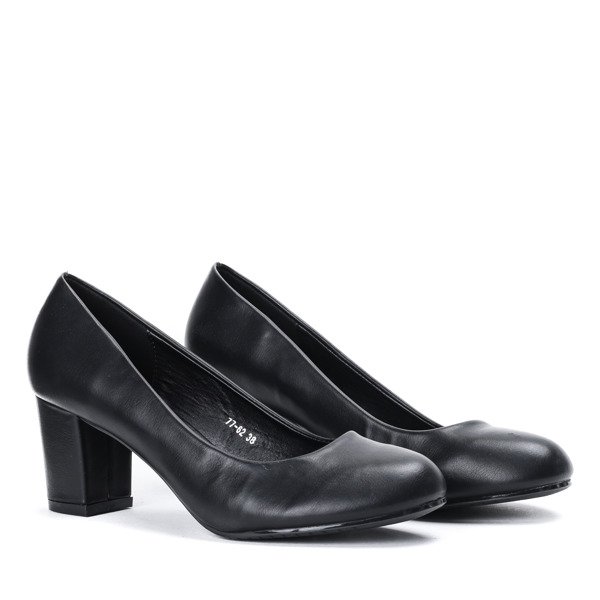 Czarne czółenka na średnim słupku Mikaelan - Obuwie