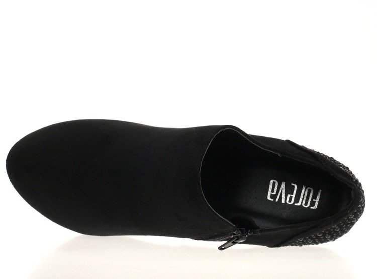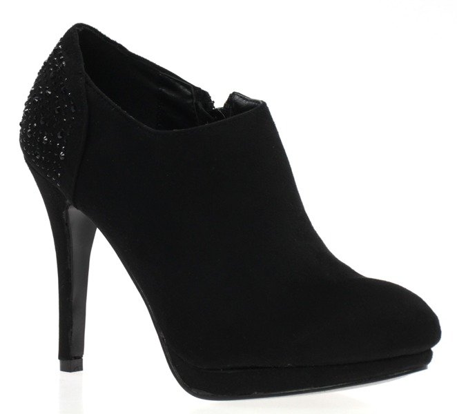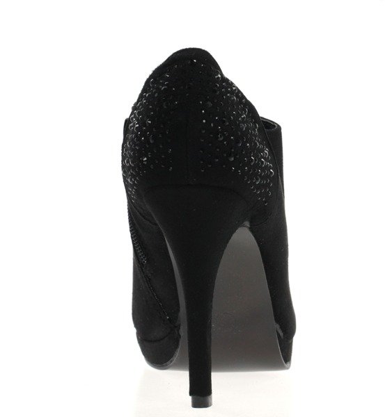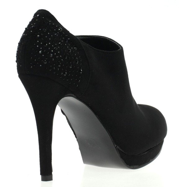 - Prawdziwa gratka dla odważnych kobiet- wysokie botki. Obuwie na wysokim słupku. Cholewka ozdobiona błyszczącymi dżetami. Idealna propozycja dla Pań w dobrym stylu!