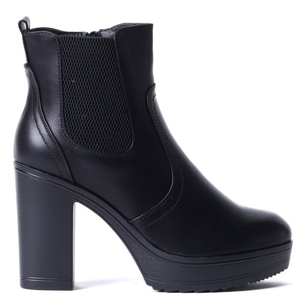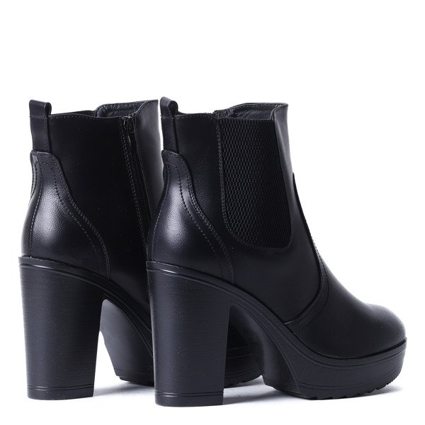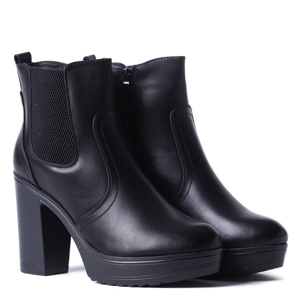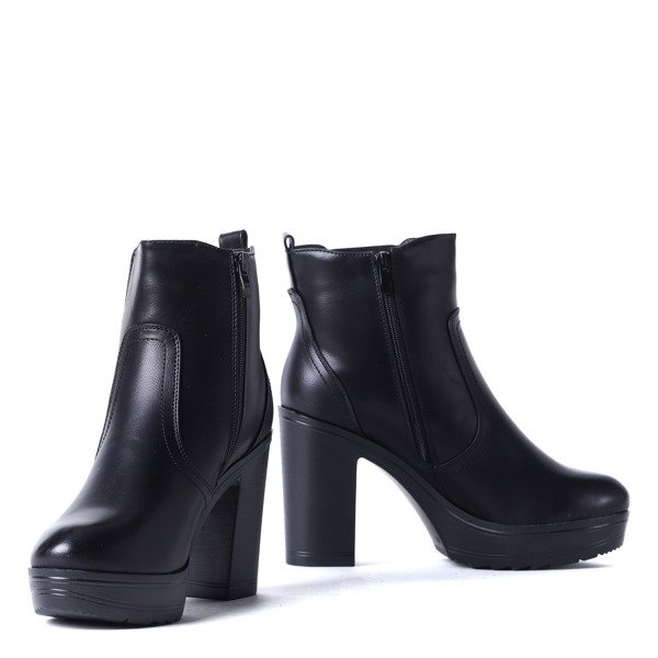 Czarne botki na słupku skóra eko - Obuwie