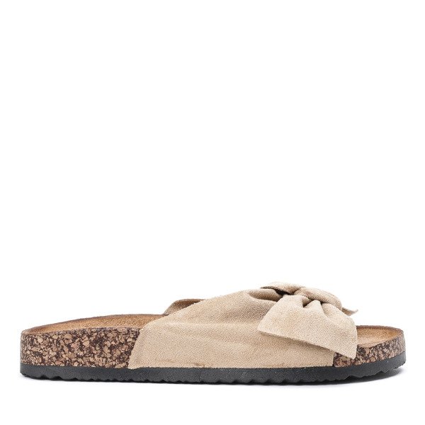 Beżowe klapki z kokardką Morena - Obuwie