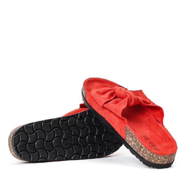 - Neuvěřitelně pohodlné dámské boty s oranžovou mašlí. Svršek a stélka jsou vyrobeny z měkkého ekologického semiše. Podešev je vyrobena z kombinace gumy a korku. Pantofle jsou ideální jak pro šaty, tak pro kalhoty!