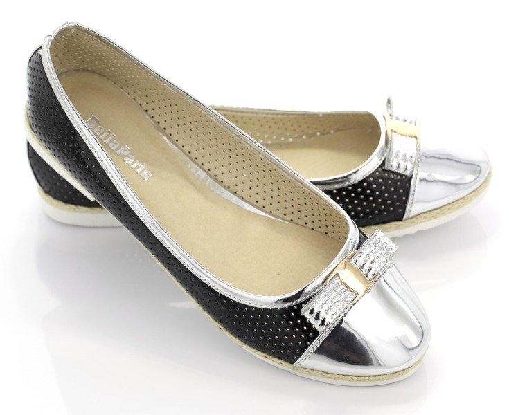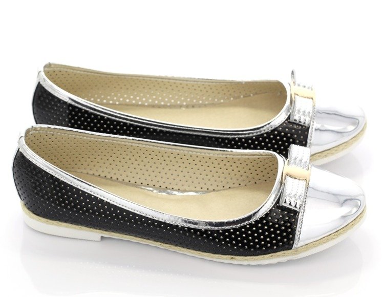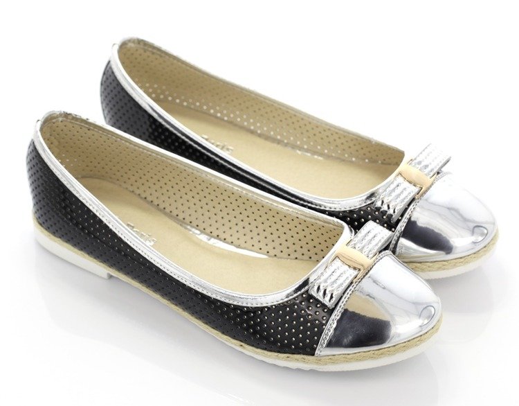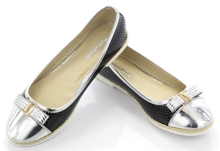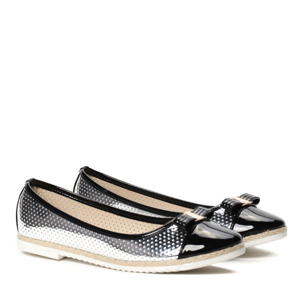 Srebrno-czarne baleriny z lakierowanym noskiem Tossa - Obuwie