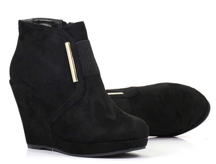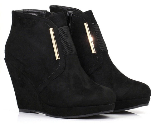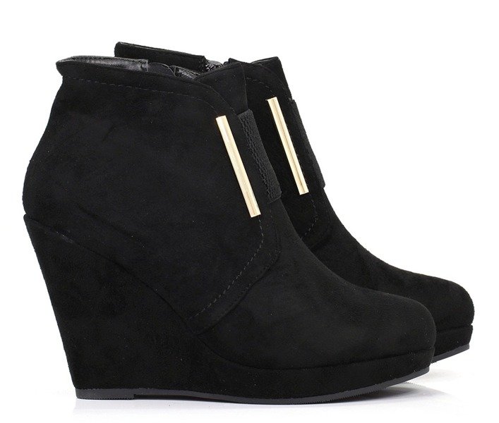 Czarne botki na koturnie - Obuwie