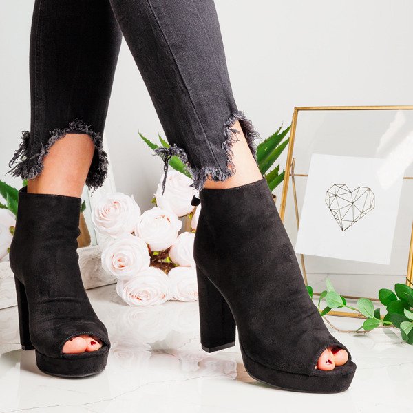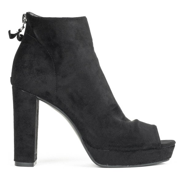 - Senzační dámské boty na vysokém sloupku, vyrobené z ekologického semiše v černé barvě. Vyříznuté horní prsty. Vzadu mají zapínání na zip. Boty budou perfektní pro elegantní i každodenní stylizaci!