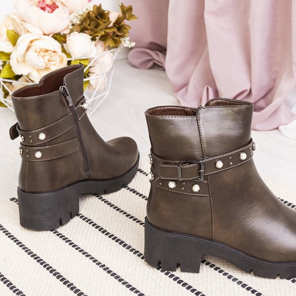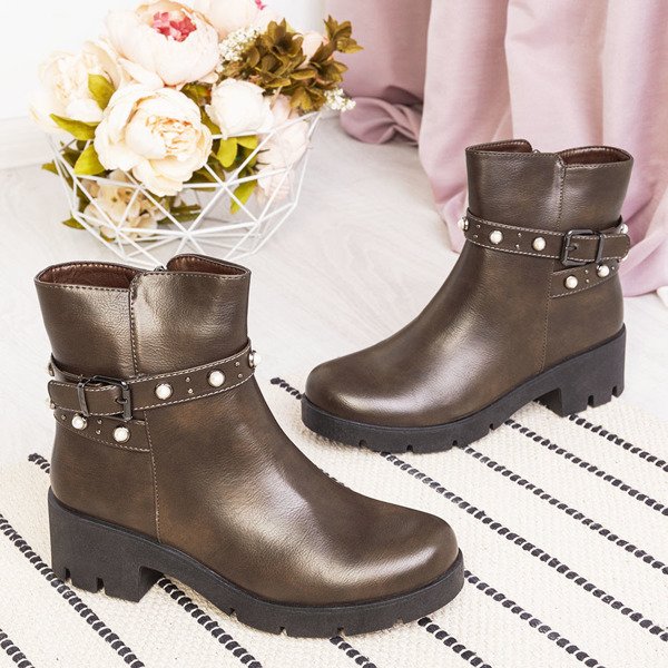 Hnědé boty s perlami Tasia - Obuv