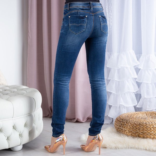 - Klasické tmavě modré džíny se středním pasem. Materiál - bavlna. Model je zapínán na zip a knoflík. Budou pracovat každý den. POZNÁMKA: Přesnost měření (+/-) 1 cm.