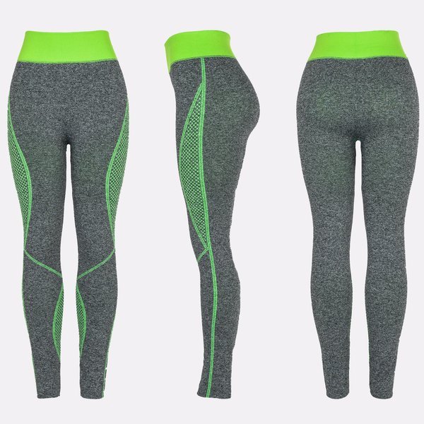 - Elastické kamaše vyrobené ze silné tkaniny. Legíny jsou šedé a mají zelené vložky. Prezentované oblečení lze použít jako sportovní spodní prádlo pro svrchní oděvy. POZNÁMKA: Přesnost měření (+/-) 1 cm.