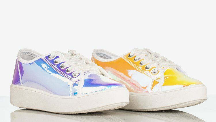 - Originální holografické tenisky na platformě z eko kůže. Krajka nahoru, textilní vložka. Módní a velmi pohodlné. VAROVÁNÍ: model může mít na podrážce nečistoty