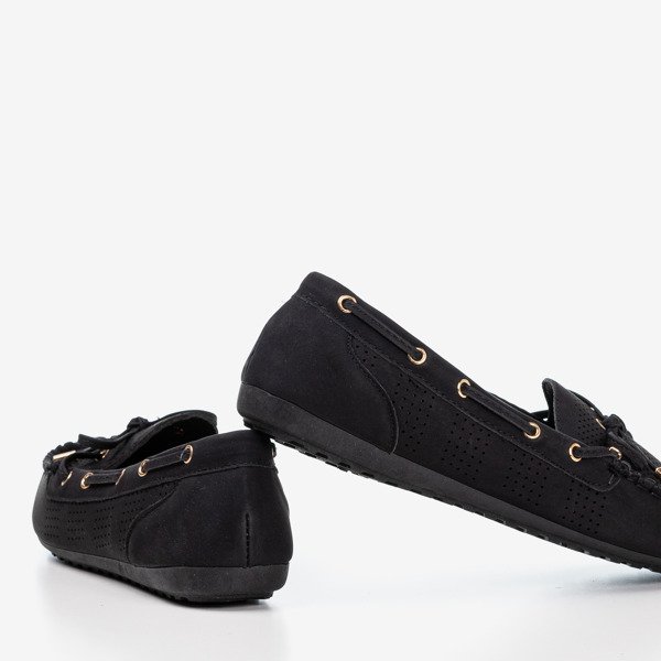 - Neuvěřitelně pohodlné černé mokasíny pro ženy. Svršek je vyroben z matné ekologické kůže s povrchovou úpravou prolamované. Stélka z ekokůže má měkké podložky pod nohama