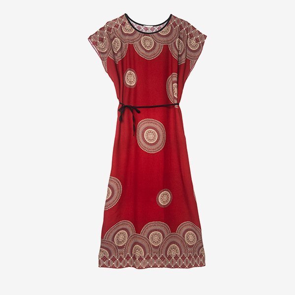 - Vzorované midi šaty v egyptském stylu. Model má kulatý výstřih a vázání zdůrazňující pas. Šaty jsou ideální na léto. POZNÁMKA: Přesnost měření (+/-) 1 cm.