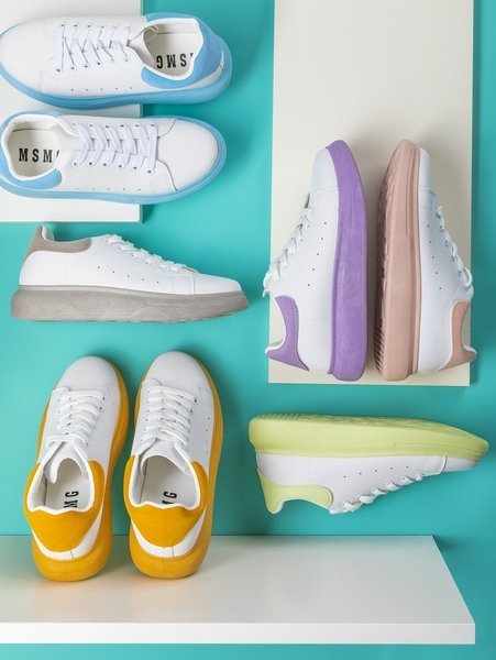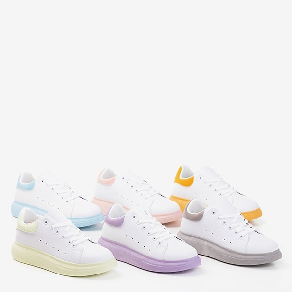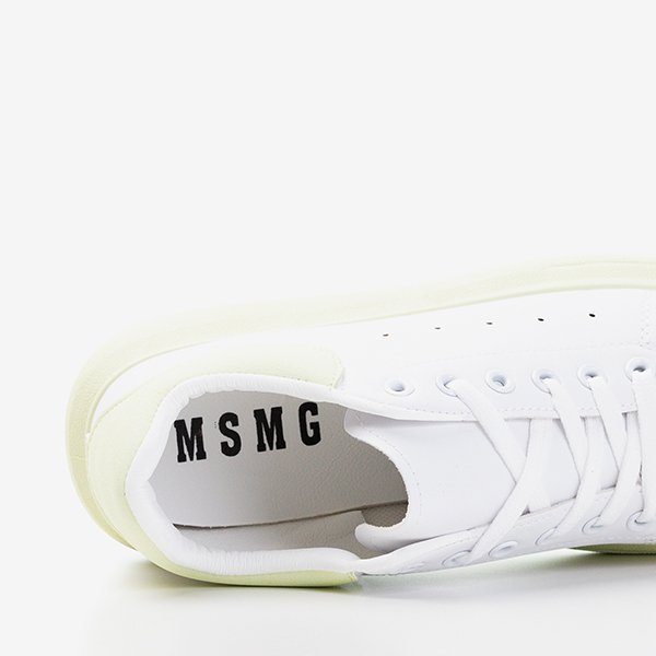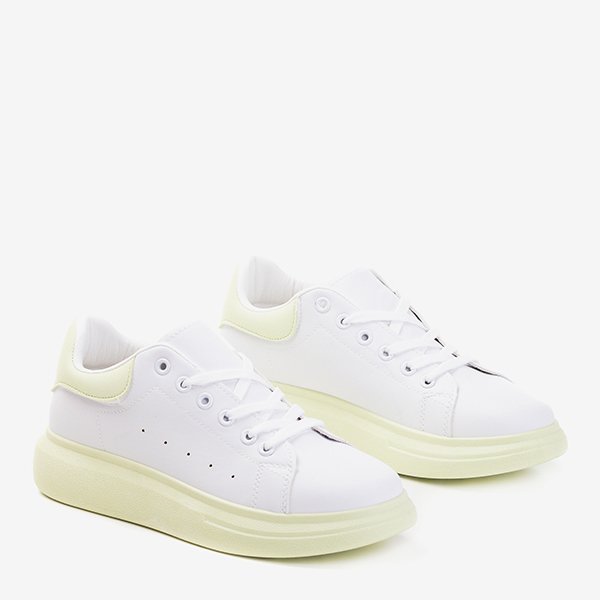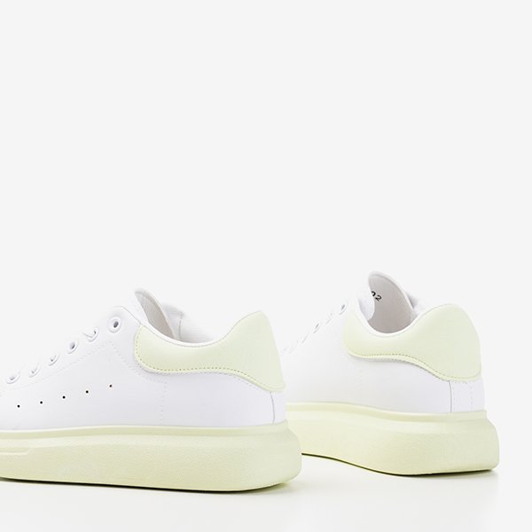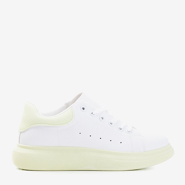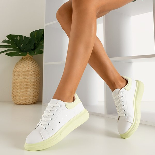- Módní sportovní obuv se světle zelenými vložkami - vyrobena z ekologické kůže v bílé barvě. Model má šněrování. Jedná se o pohodlné každodenní boty.