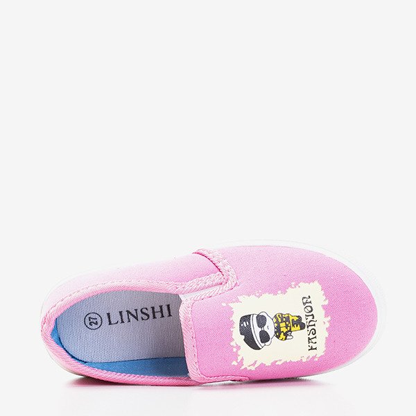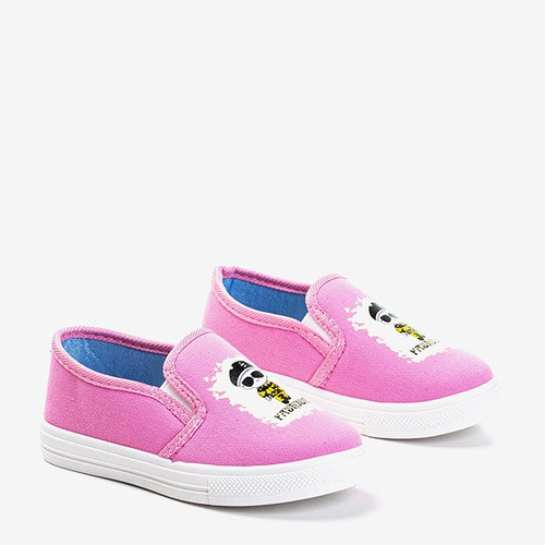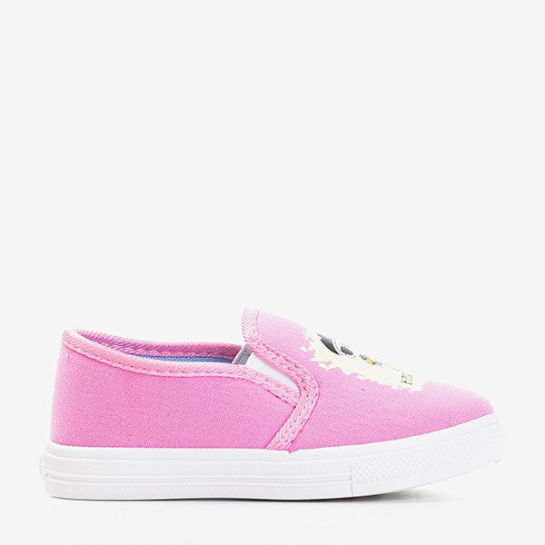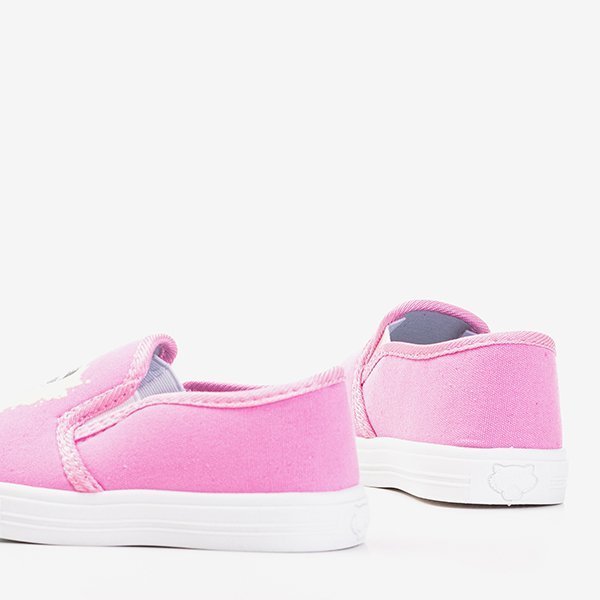 - Dětský růžový lístek na tenisky. Svršek a stélka jsou vyrobeny z látky. Přední část obuvi je potištěna potiskem. Masivně vyrobená a velmi pohodlná díky měkké gumové podrážce.