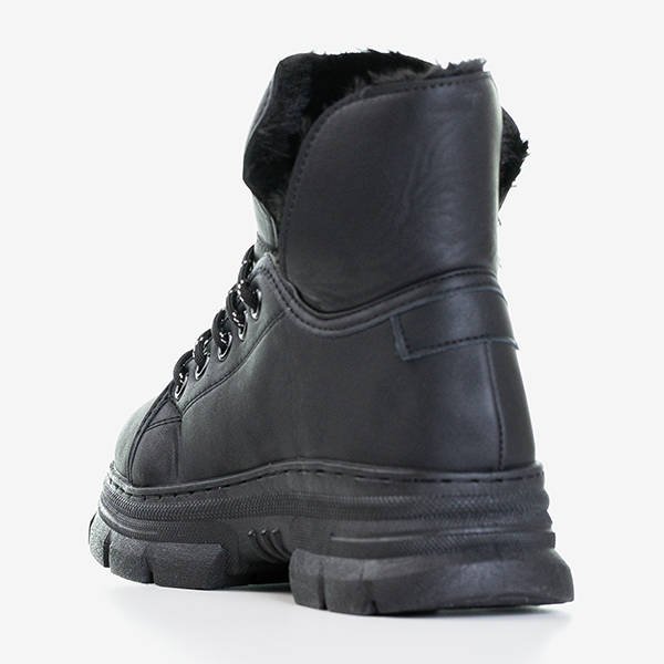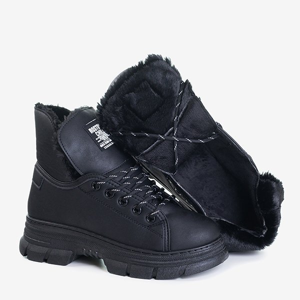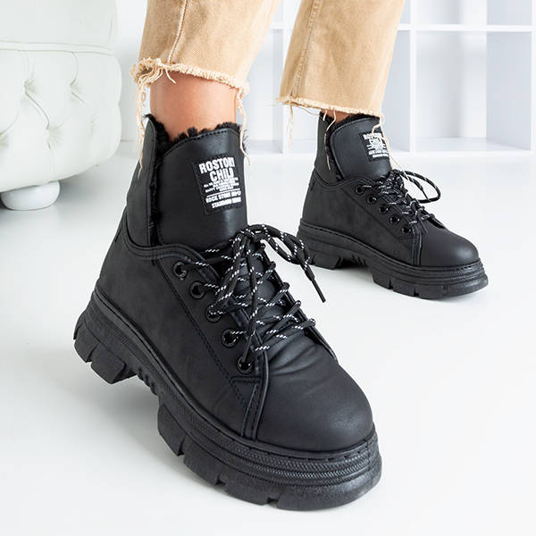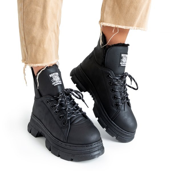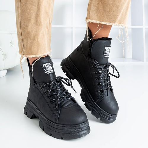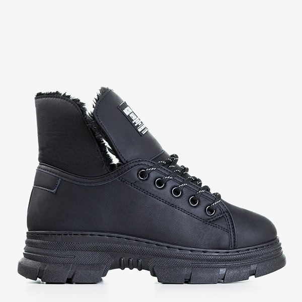 • Dámské turistické boty vyrobené z matné ekologické kůže v černé barvě. Krajkový model, po stranách výřezy a uvnitř je teplá srst. Tyto boty budou skvělým doplňkem vašeho sportovního stylu.