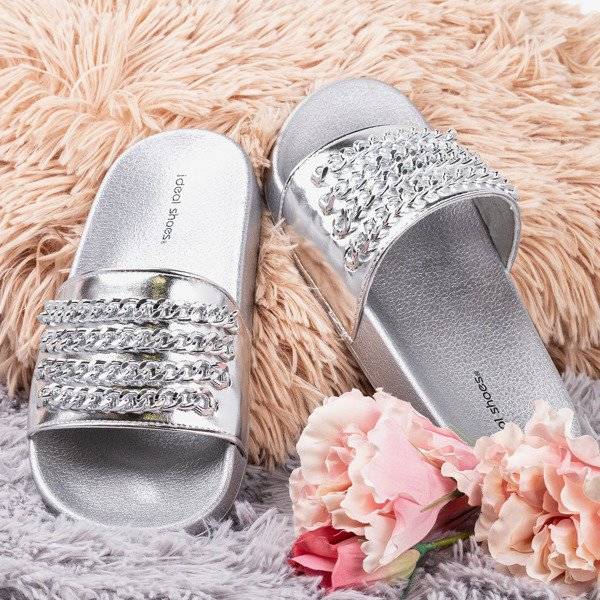 OUTLET Stříbrné pantofle s řetízkem Slivien - Obuv