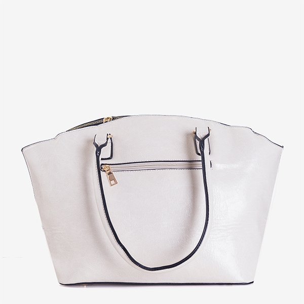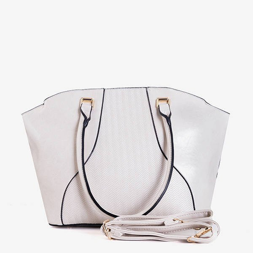 • Velká dámská kabelka přes rameno vyrobená z ekokože v béžové barvě. Materiál je zdoben dekorativní razbou. Model na zip.