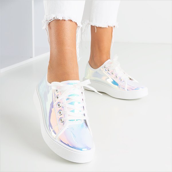 - Efektivní holografické tenisky na platformě vyrobené z ekologické kůže. Svrchní šněrování, uvnitř látková vložka. Jsou vhodné pro mnoho originálních stylů. Poznámka: výrobek má na materiálu nečistoty.