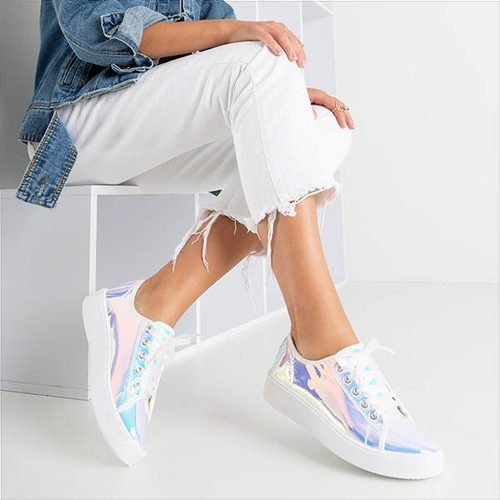 OUTLET Bílé holografické tenisky s platformou Vordena - Obuv