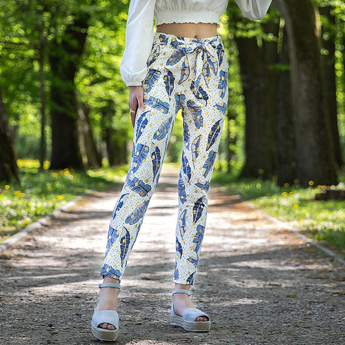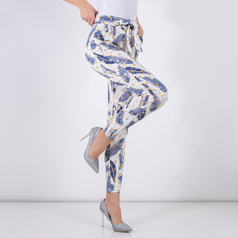 • Elegantní dámské treggy z pružné látky s peřím. Model má elastický pas, dvě kapsy a odpovídající barevný opasek. Perfektní doplněk ke košili! POZNÁMKA: Přesnost měření (+/-) 1 cm