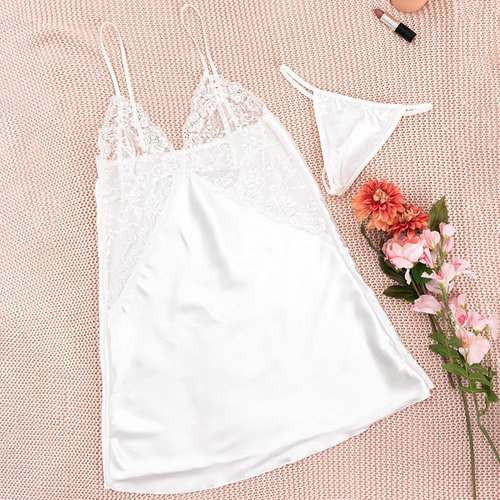 - Působivá dámská noční košile vyrobená z la saténové látky. Tričko s krajkovými vsadkami a nastavitelnými ramenními popruhy. Kromě toho má model hladké řemínky. POZNÁMKA: Přesnost měření (+/-) 1 cm.