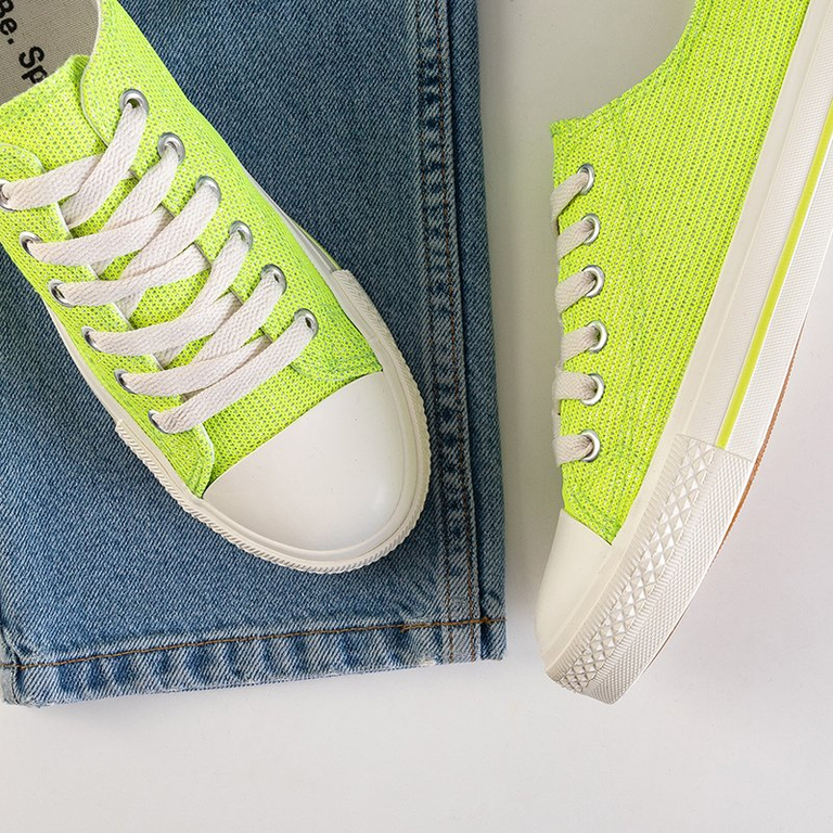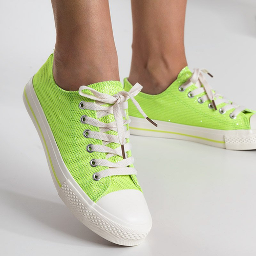 - Klasické dámské tenisky vyrobené z látkového materiálu s lesklým povrchem. Šněrovací model. Podešev je vyrobena z gumy.