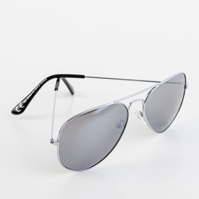 - Klasické dámské sluneční brýle s kovovým rámem se stříbrnou povrchovou úpravou. Objektivy v černém odstínu a s filtrem UV 400. Módní a elegantní doplněk zvýrazní každý outfit!