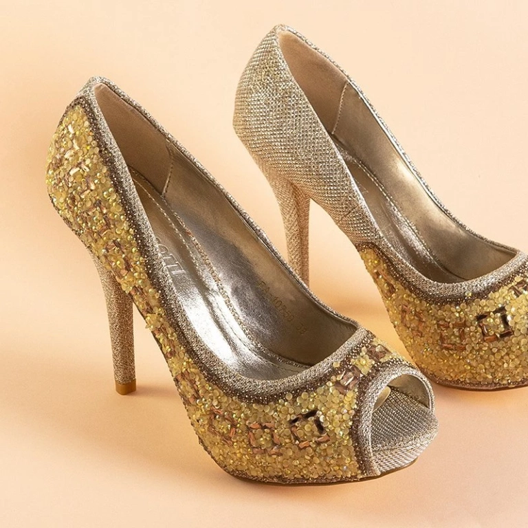 OUTLET Zlaté dámské lodičky s ozdobami Verdad - obuv