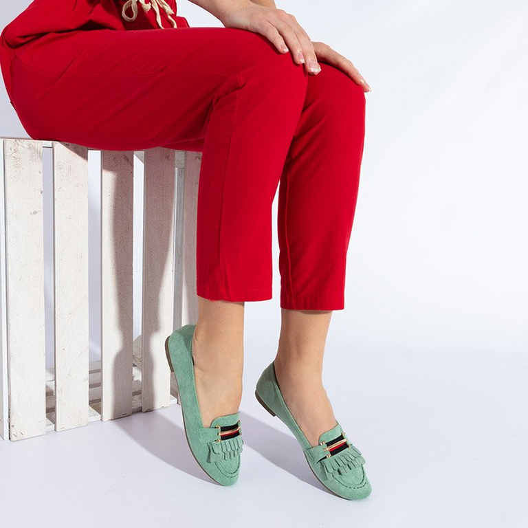 Zelené dámské mokasíny s třásněmi Morisa - Obuv