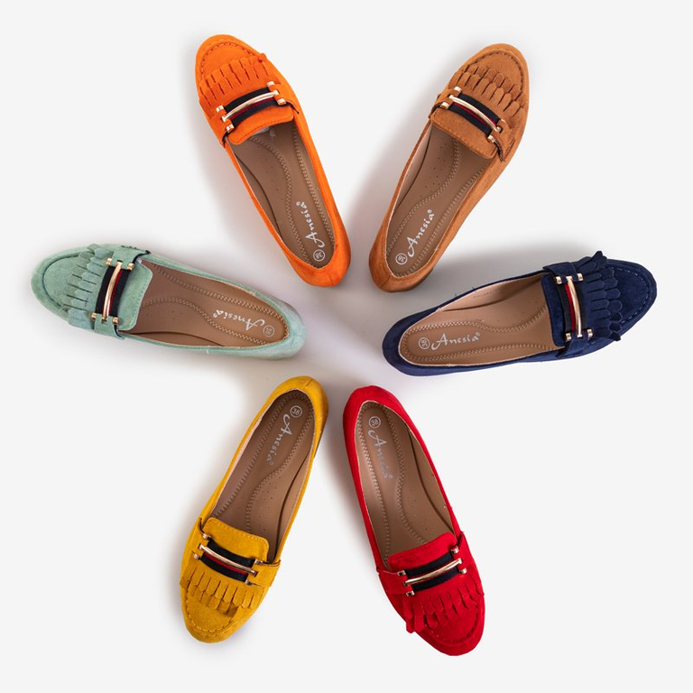 - Absolutně stylové dámské mokasíny zdobené třásněmi na špičce. Model je vyroben z ekologické semišové kůže, uprostřed měkká stélka z ekologické kůže s polštáři. Perfektní obuv pro vytváření módních outfitů!