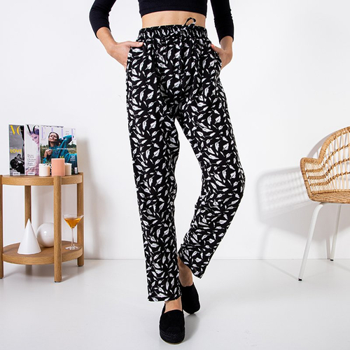 Dámské černé látkové kalhoty s peřím - Oblečení