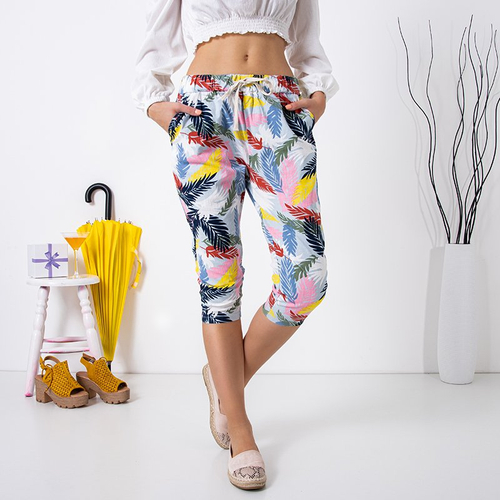 Bílé dámské 3/4 kalhoty s květinovým vzorem - Oblečení
