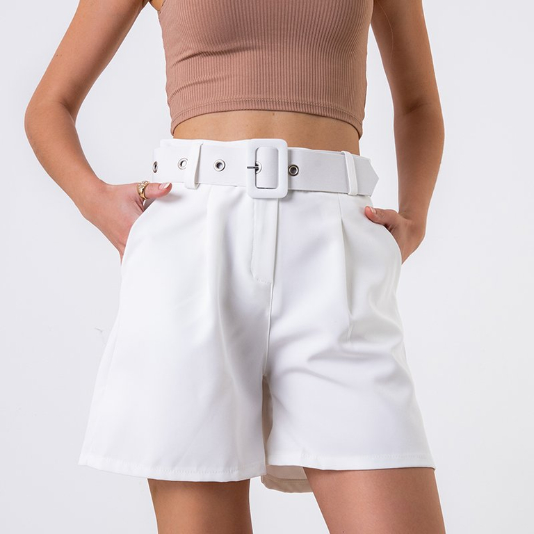 Dámské bílé kraťasy s opaskem - Oblečení