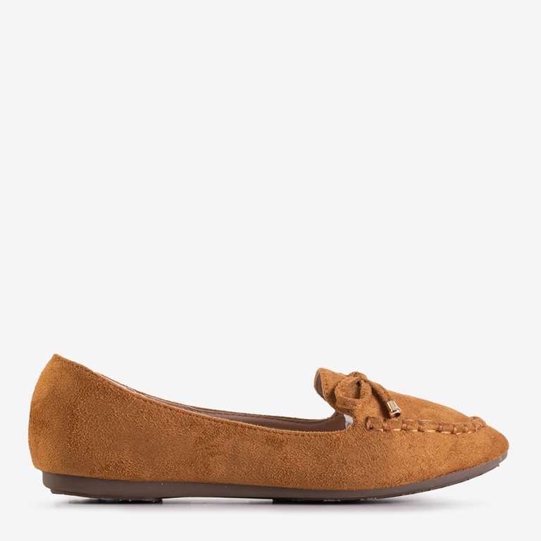 Světle hnědé dámské mokasíny z eko semiše s mašlí Norina - Boty