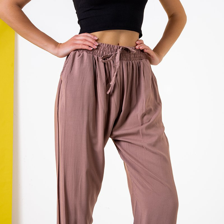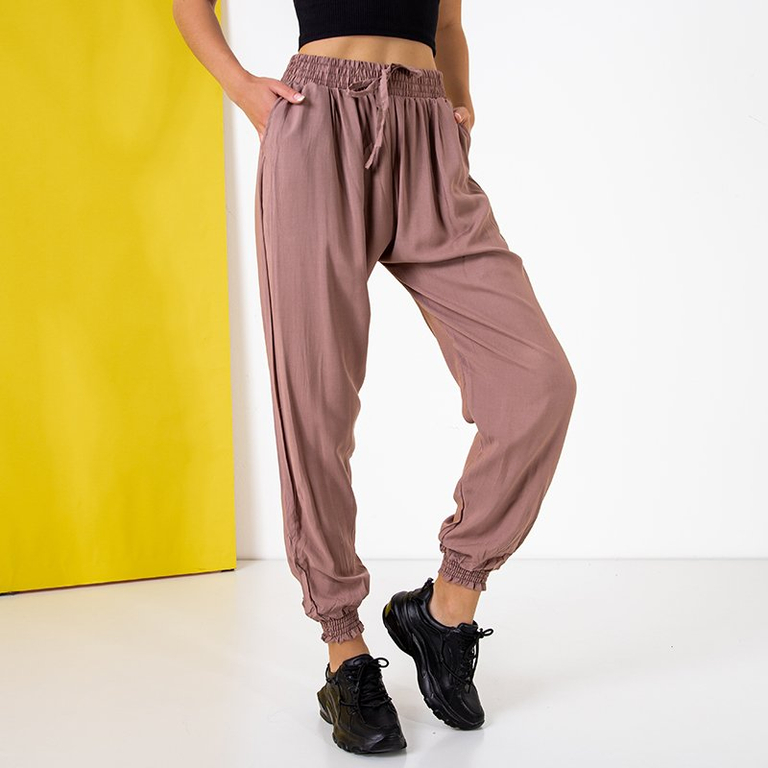 - Lehké dámské látkové haremové kalhoty vyrobené z bavlněné látky. Model má v pase a na nohou gumičku, vpředu dvě kapsy. Poskytují plný komfort a svobodu pohybu. POZNÁMKA: Přesnost měření (+/-) 1 cm.