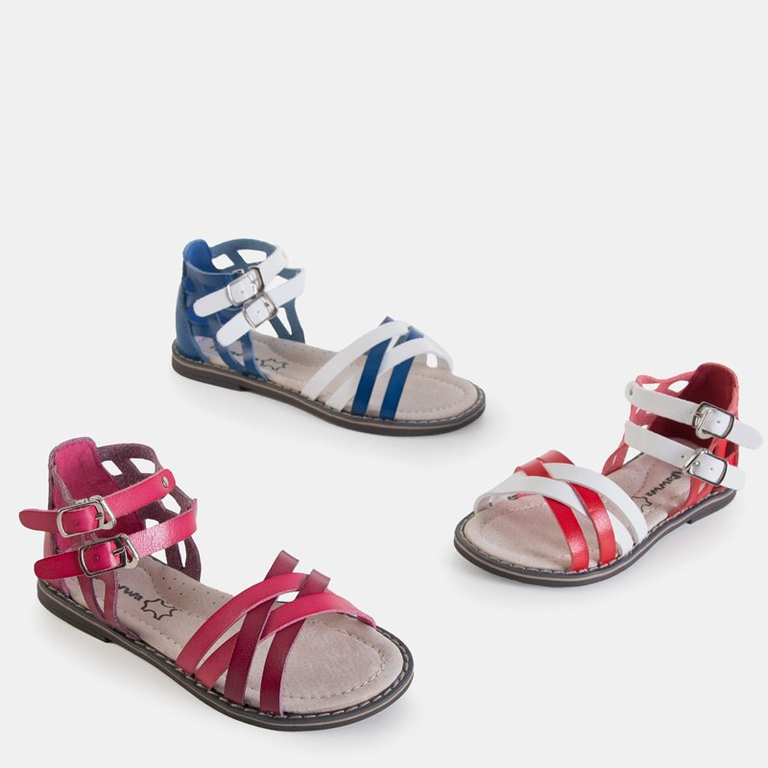 • Dívčí sandály vyrobené z ekologické kůže, stélka podšitá přírodní kůží. Model je na vnější straně připevněn dvěma háčky. Vaše malá princezna bude potěšena.
