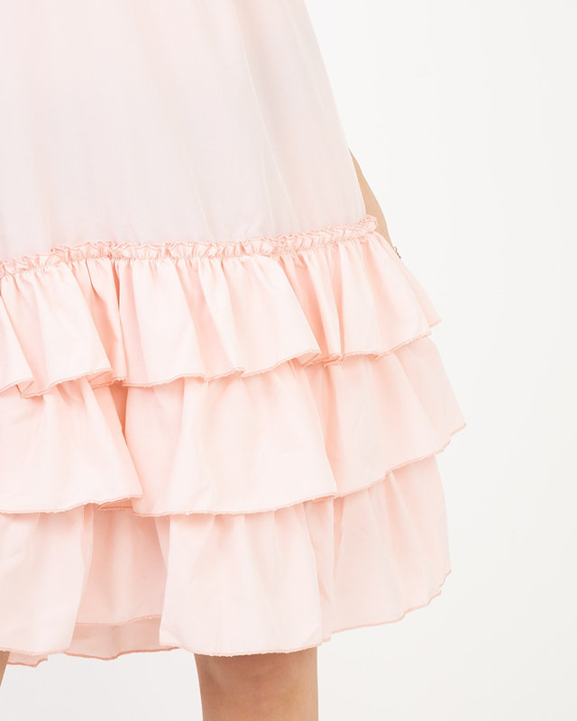 Tmavě růžové dámské šaty s popruhy s volánky - Oblečení