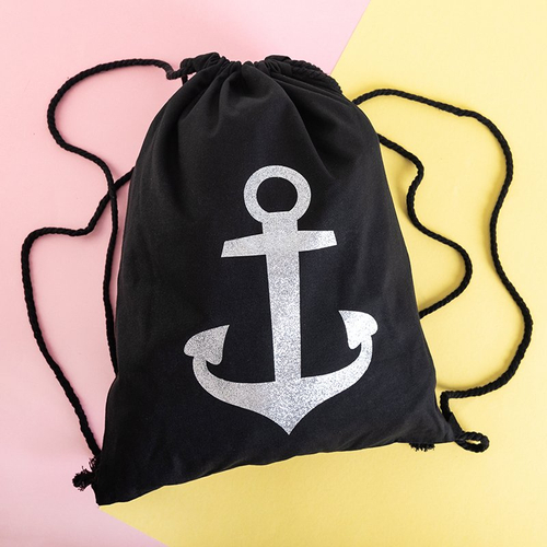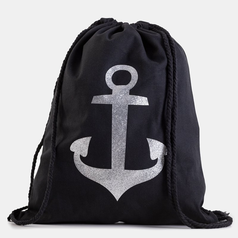 Černý pytel typu batoh s třpytivým potiskem kotvy - batohy