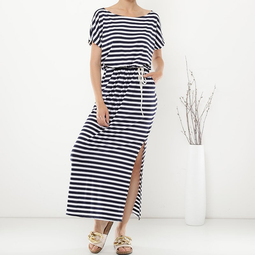 Dámské tmavě modré pruhované maxi šaty - Oblečení