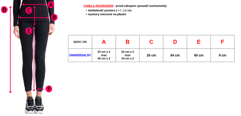 - Dámské středně velké legíny s dlouhýma nohama. Izolovaný a vzorovaný model. Ideální volba pro sukni na zimu, pokud si ceníte pohodlí! POZNÁMKA: Přesnost měření (+/-) 1 cm.