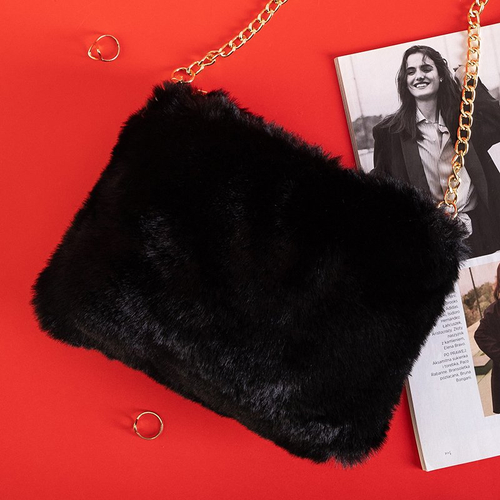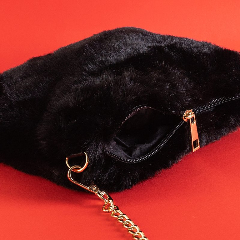 Černá kožešinová kabelka na zlatém řetízku - Kabelky