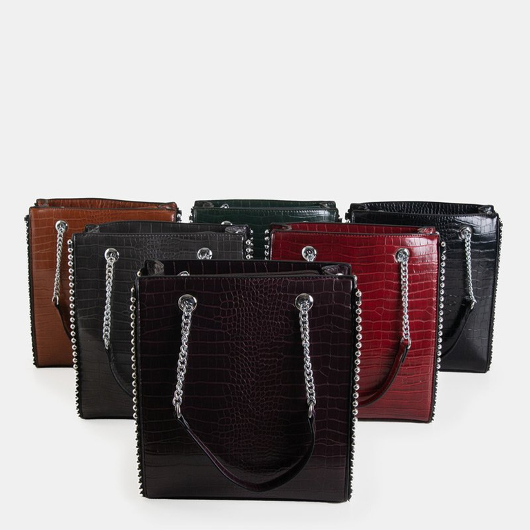 - Stylová dámská kabelka z ekokůže s ražbou hadí kůže a zapínáním na zip. Model má: - 1 vnější kapsu na zip, - 4 vnitřní kapsy, včetně 2 zapínaných na zip, - přídavný nastavitelný popruh.