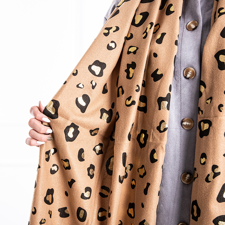 - Krásná dámská hřejivá šála, ideální na podzim a zimu. Zdobené zlatými vsadkami a střapci po stranách.