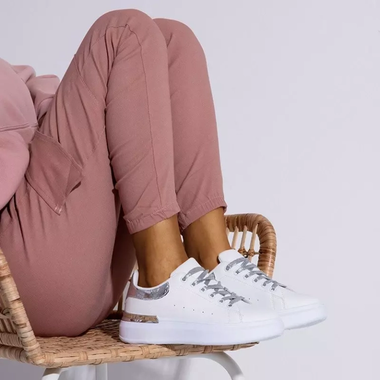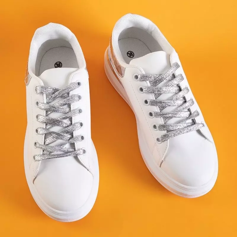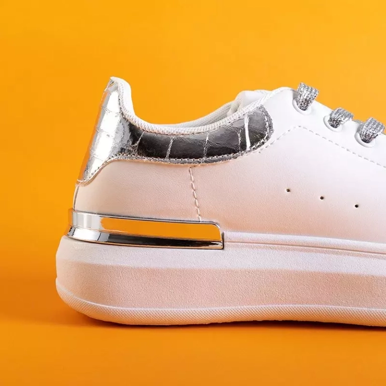 OUTLET Bílé a stříbrné dámské sportovní boty Pamelia - Oblečení