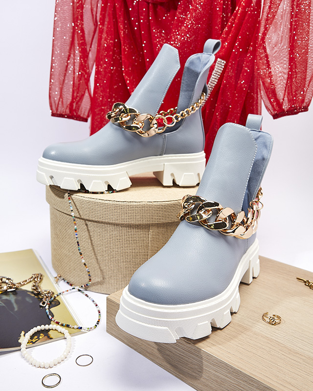 Modré dámské kozačky s řetízkem Tenkay - Obuv