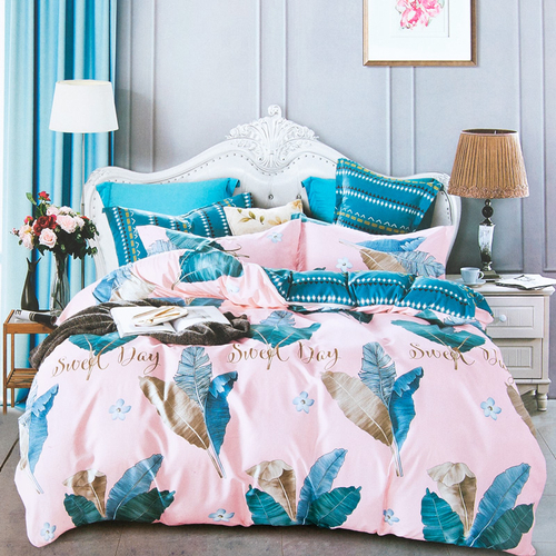 Povlečení z růžového listového bavlny 160x200 sada 4 díly - povlečení