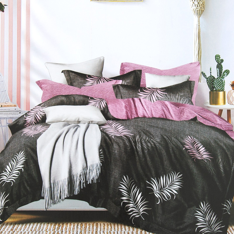 Povlečení z bavlny černé a šedé listí 160x200 sada 4 díly - povlečení