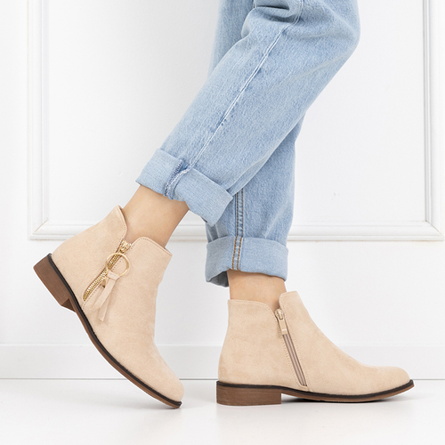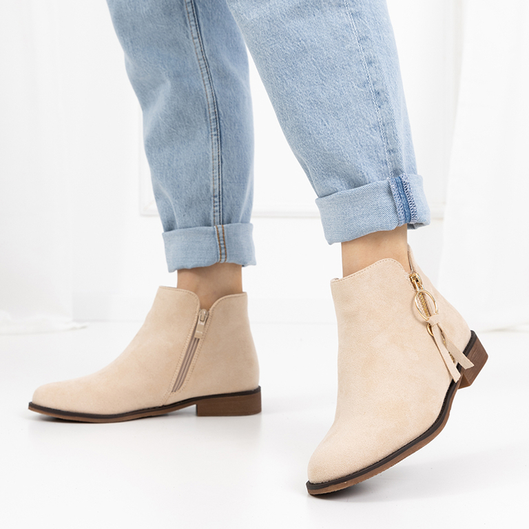 - Klasické dámské kozačky na plochém podpatku, vyrobené z ekologické semišové kůže. Uvnitř mají kožešinu. Zapínání na zip.