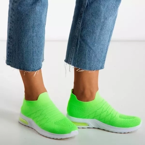 - Neonově zelená dámská sportovní obuv s plochou podrážkou. Svršek je vyroben z látky. Model bez zapínání. Pevně vyrobené a velmi pohodlné díky měkké, gumové podrážce. Poznámka: výrobek má na materiálu špínu.