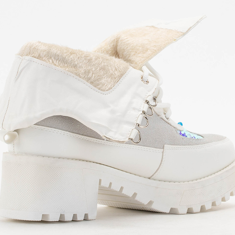 Dámské bílé kotníkové boty Licynia na plochém podpatku - Boty